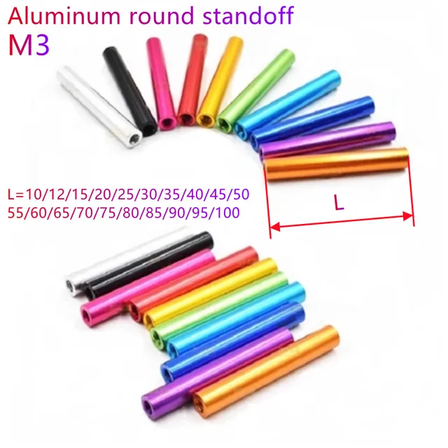 M3 알루미늄 기둥, 원형 스탠드오프 스페이서, 간격 나사, M3 * 6, 8, 10, 12, 15, 20, 23, 25, 30, 35, 37/40, 100mm, OD = 5, 10 개 mm